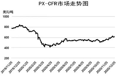 2020年,PX市場大幅回落后保持低位震蕩。在原油暴跌以及國際疫情肆虐的陰霾之下,國內(nèi)PX市場持續(xù)走低,4月份價格一度跌至近十幾年來新低。隨著終端需求緩慢復(fù)蘇,PX市場止跌企穩(wěn),不過在高庫存背景下,PX反彈乏力,即使在“金九銀十”市場也沒有出現(xiàn)亮眼表現(xiàn),下半年則基本處于窄幅波動的狀態(tài)。